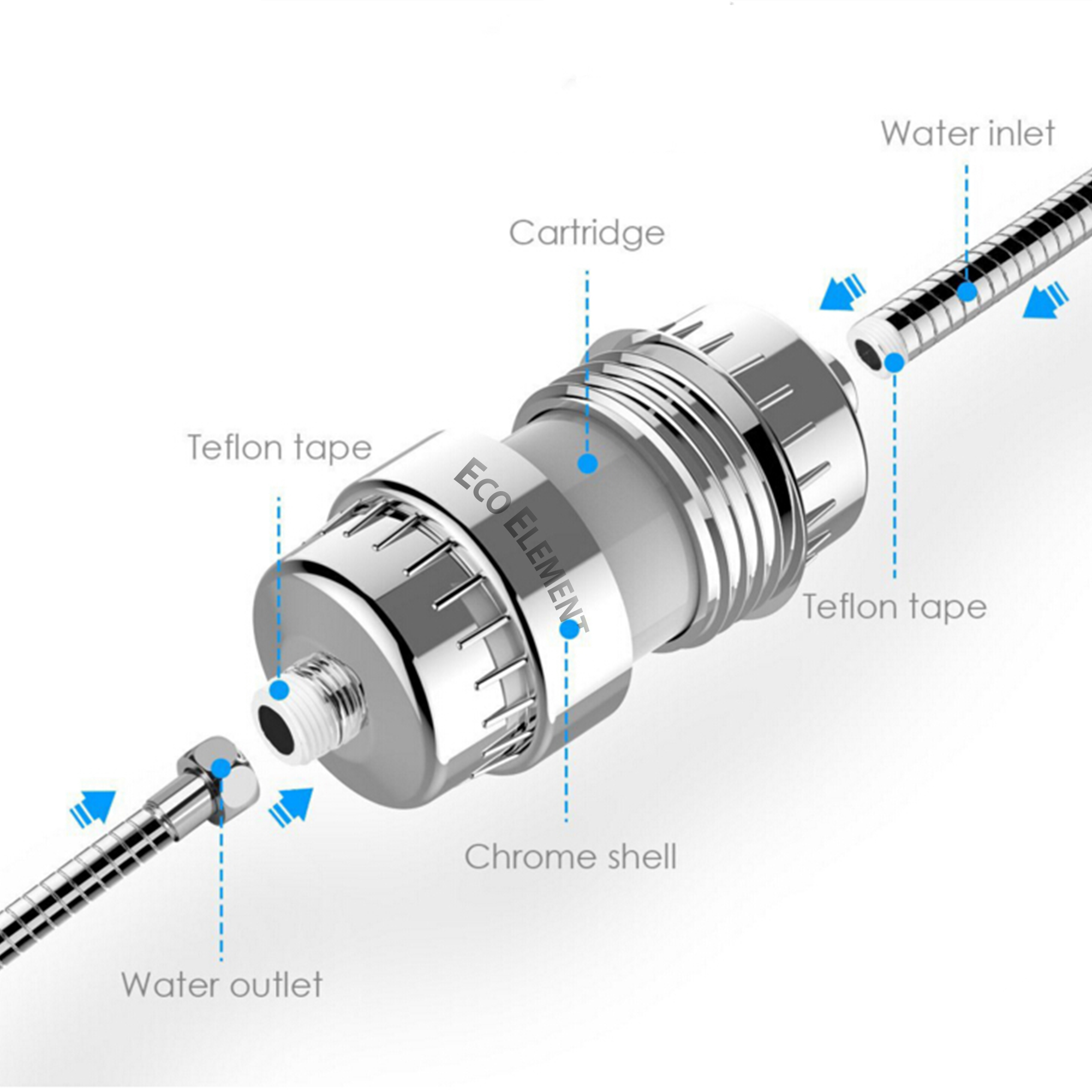 • EcoElemnt water shower filter Eco Element 2nd Generation Enhanced Shower Filter. Completely Removes All Harmful Bacteria Including Chlorine, Heavy Metals, and Hard Ions. (100% Recyclable)